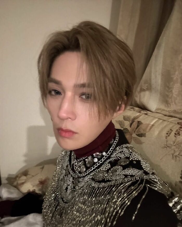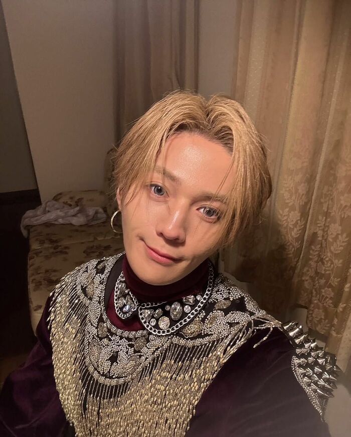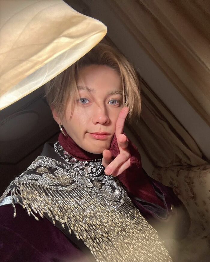 金髪で青色のカラコン、耳元には大きなピアス。キラッキラの装飾が施された衣装を身にまとった姿は、ドキッとしてしまいます。