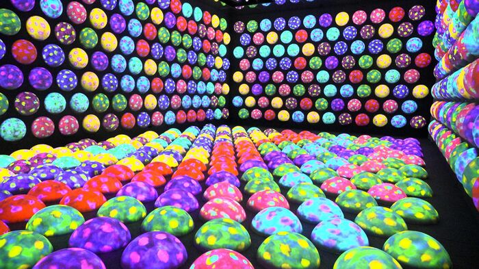 部屋に入ると、床や壁一面に、半球状に膨らんだ球体が数百個、ビッシリと並びます。