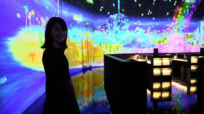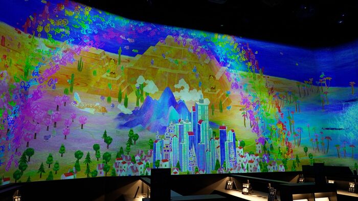 そのまま壁面に映し出された壮大なアートの世界に飛び立っていきます!