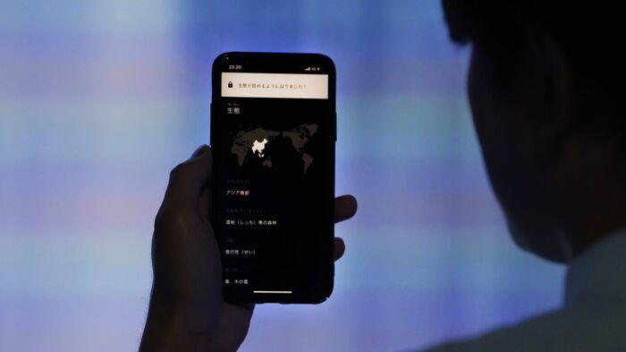 専用のアプリが入ったスマホを使って、動物に向かって「観察の矢」を放って…