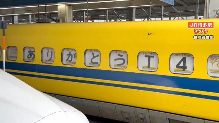 「約23年間お疲れさまでした。ドクターイエローT4編成、最終運行へ出発いたします。皆さま盛大にお見送り下さい」
