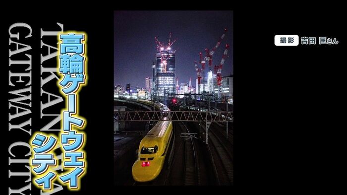 これまでに撮影した写真を見せてもらうと、建設が進む高輪ゲートウェイシティとドクターイエローという珍しい組み合わせの写真。