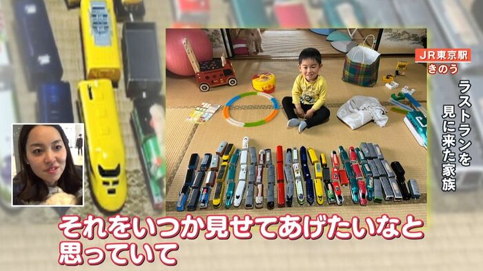 (息子に)私たち夫婦から最初、初めてプラレールをプレゼントしたのがドクターイエローだったので、それをいつか見せてあげたいなと思っていて。きょう最後の日だということで、家族で来ました。