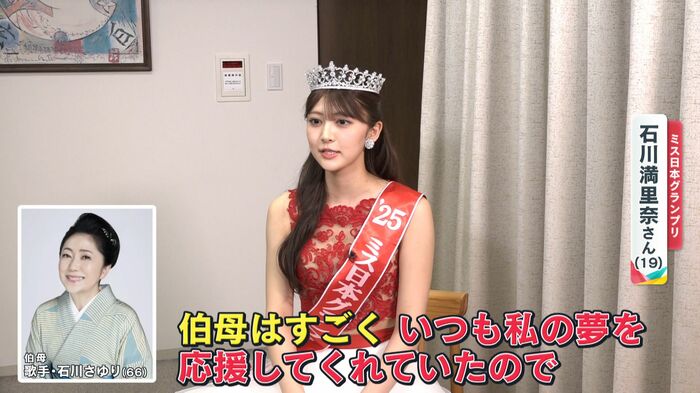 満里奈さんのミス日本グランプリ受賞を受け、28日、伯母の石川さゆりさんが「めざまし8」にコメントを寄せてくれました。