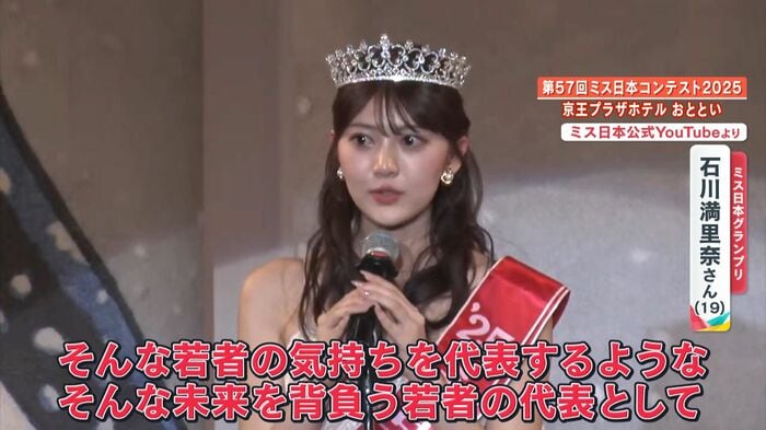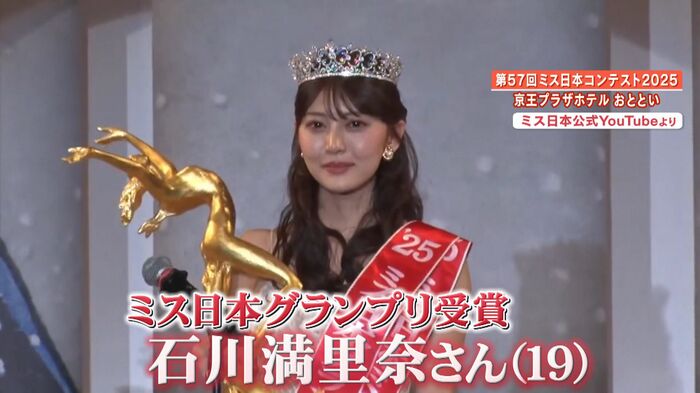 2025年1月27日に行われた「第57回ミス日本コンテスト2025」でグランプリに輝いた、石川満里奈さん(19)。