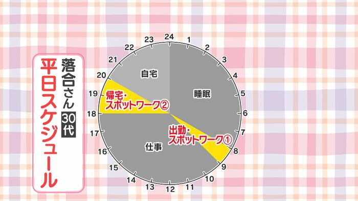 落合さんは、出社時間の午前8時から9時と、会社から帰宅する午後6時から8時というわずかな時間を活用してスポットワークを行っています。