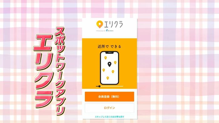 分単位でできるバイトを多く紹介している「エリクラ」というスポットワークアプリ。