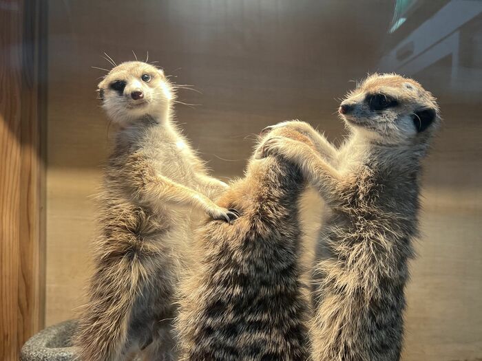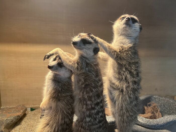 まるで映画のワンシーン!?ミーアキャット3兄弟の姿が話題