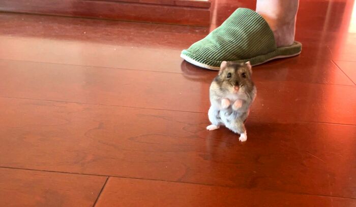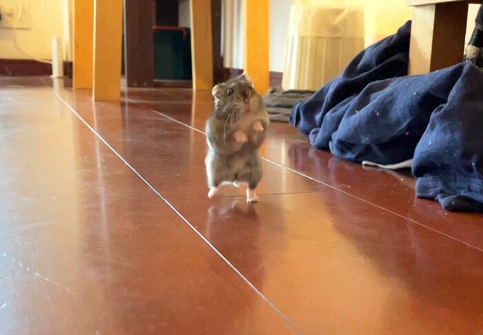 投稿には「ファイターに見える」「ジョジョ立ちハムかわョ」「モハメド・ハム」「このコは本当にハムスターですか?w」などのコメントが寄せられ話題になっています。