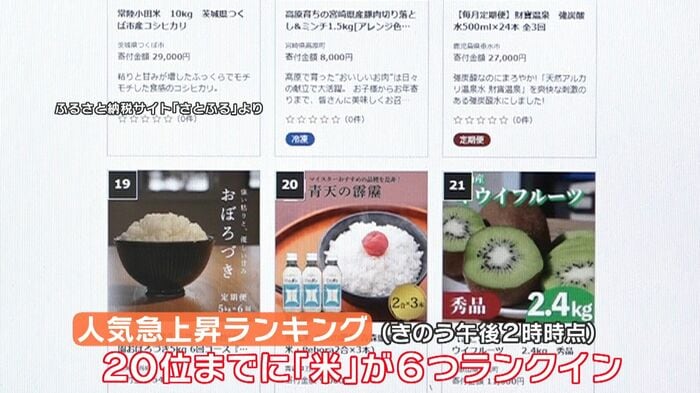 「令和の米騒動」とも呼ばれる深刻な米不足が全国で問題となる中、ふるさと納税サイトで米の返礼品の人気が急上昇。受付を停止する市町村も増えています。