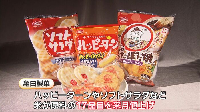 また、亀田製菓では10月以降 ハッピーターンやソフトサラダなど米を原材料する17品目の値上げを決定。