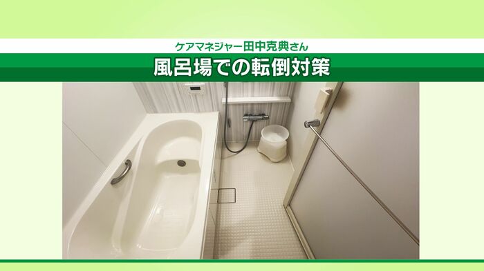 風呂場での転倒を防ぐ方法についても、田中さんはアドバイス。裸で入る風呂場は転倒時のダメージも大きいので、早めの対策が必須だといいます。
