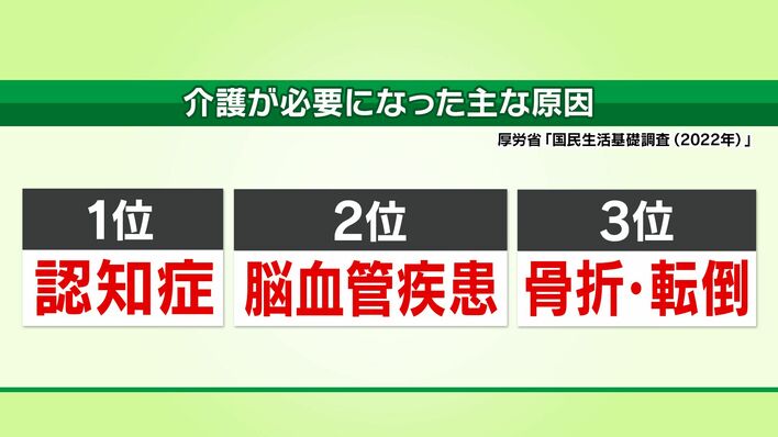 厚生労働省の調査によると介護が必要となる主な原因は、1位「認知症」、2位「脳血管疾患」に続き、「骨折・転倒」が3位!三木さんが「親が90歳を過ぎてから、転んでも自分で起き上がれないようになり、車椅子生活になった」と言う通り、「転倒予防」が高齢の親の生活ではポイントになるようです。