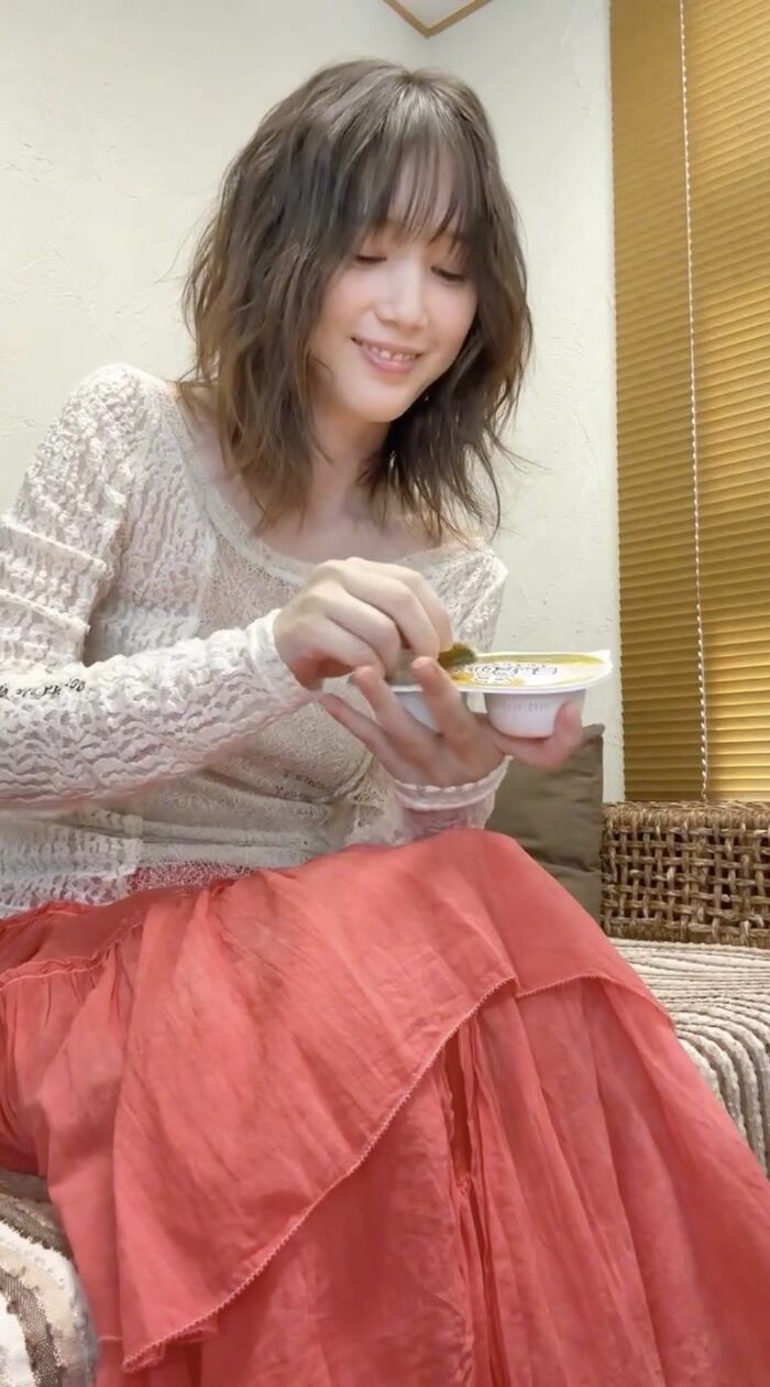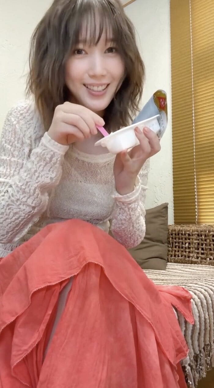 「んー!!!クッション食べてるみたい」と独自のリポートで食感を説明。目をつぶりながら1口目を味わう様子は、なんともおいしそうです!