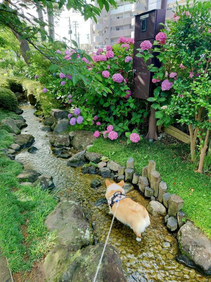 さらに、水が好きすぎるあまり、雨上がりの水溜まりなどにもちゅうちょなく入っていくので、散歩後のお腹はいつも真っ黒になってしまい、帰宅後はすぐにシャワーをするそう。