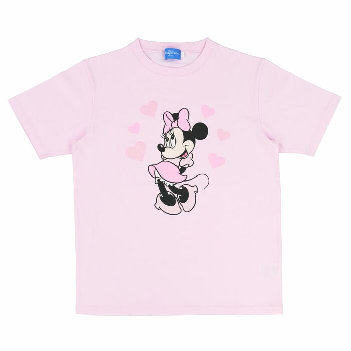 ミニーのイラストがプリントされたTシャツは、カジュアルコーデの主役に。ハートがちりばめられたデザインは、着るだけで気分が上がること間違いなしです!