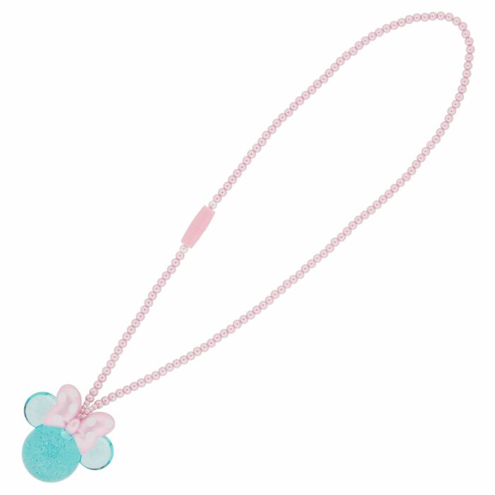 ミニーシェイプのペンダントの中にキラキラのラメ散りばめられた幻想的なデザインは、夜のパレードや花火の時間にぴったりです。