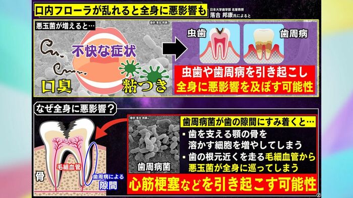 『めざまし8』は、日本大学歯学部の落合邦康名誉教授に、様々な病気に影響する、口内環境の予防について詳しく聞きました。
