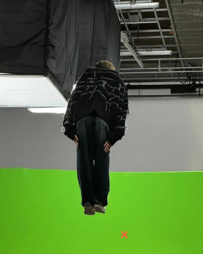 さらに、ワイヤーでつるされ全身をぴたっとまっすぐにした岸さんの後ろ姿など、貴重な撮影の裏側をのぞき見ることできるショットが盛りだくさん!