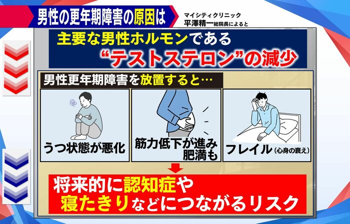 男性の更年期障害の外来がある「マイシティクリニック」平澤精一 総院長に、どのような症状で訪れるのか聞きました。