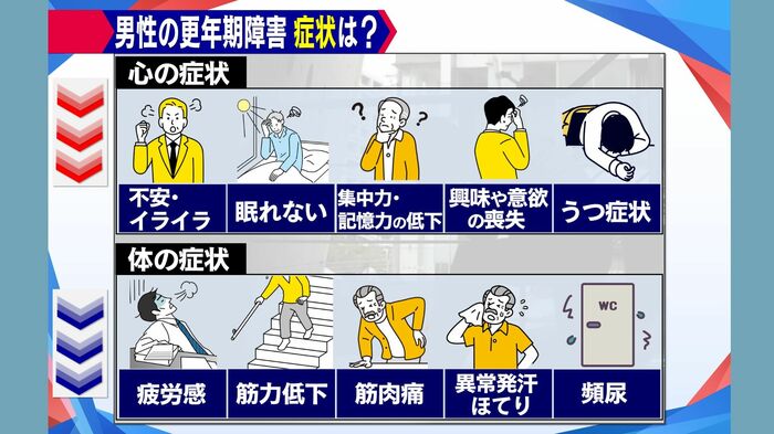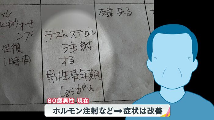 実際に更年期障害を発症し、ホルモン注射などの治療を行っている60歳の男性は、世の中に「男性も更年期障害になる」ということを知ってもらいたいと話します。