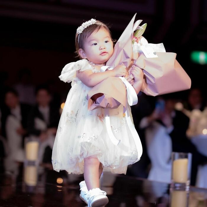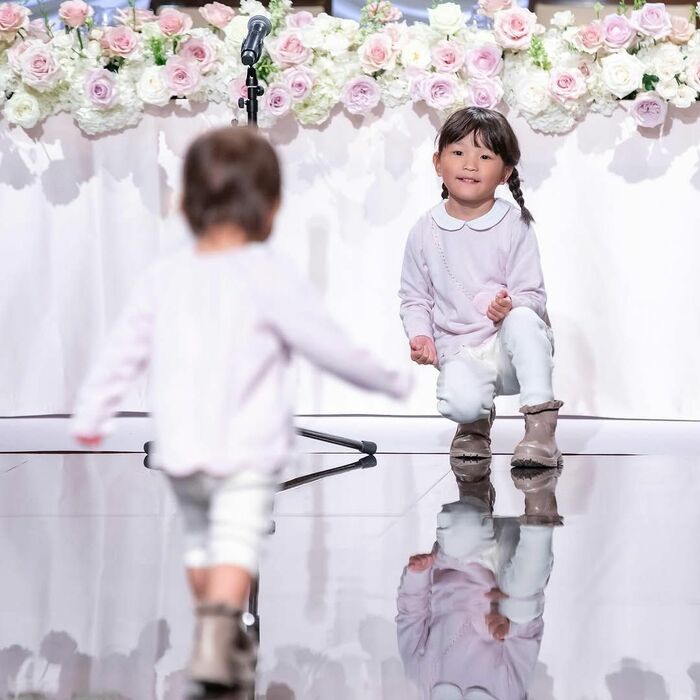 今回、「時差投稿ですが、、、」と前置きをしつつ、「この日(にこるんの結婚式)は、ひーちゃんがお花を歩いて渡せるようにリハーサルしたんだよね」と、乃々佳ちゃんの元へひーちゃんが歩いていく後ろ姿を写したリハーサル中の写真を投稿しました。