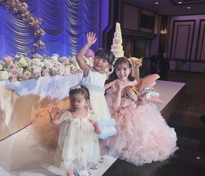 2024年11月、藤田ニコルさんの結婚式で”最年少のお友達”として歌を歌ったという乃々佳ちゃん。当時の投稿では妹のひーちゃんが新郎新婦にお花を渡す役目を果たしたことを明かし、藤田さん・乃々佳ちゃん・ひーちゃんの3ショットを公開していました。