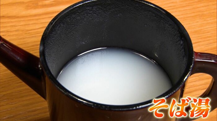 とろみが強い白濁としたそば湯は、ダシが効いたそばつゆと混ざりあうと、口の中で絶妙なハーモニーを奏でます。そば湯なのに甘く、まるで“ポタージュ”のような味わいなんだそう。