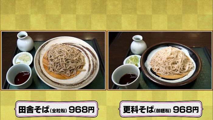 池森さんのおすすめは個性が違う「田舎そば(全粒粉)」(968円)と、「更科そば(御膳粉)」(968円)。