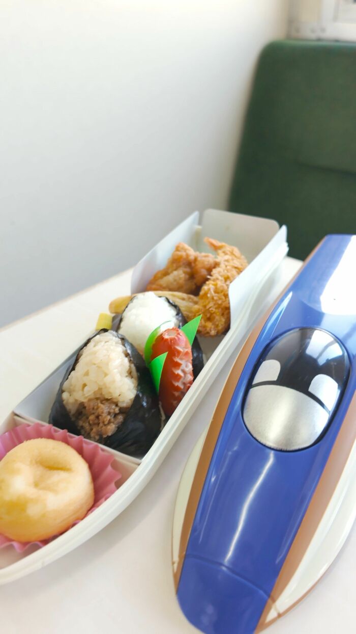BENTOは今や世界で通じる言葉ですが、海外からのお客さんに一番人気なのが「新幹線E7系弁当」。この日はおにぎりと唐揚げなどが入っていました。