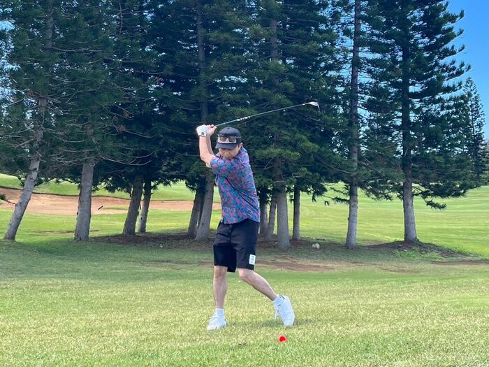 吉村さんイチオシのゴルフでは、2チームに分かれて本気で対決!初心者の有吉さんがナイスショット連発で大活躍!?