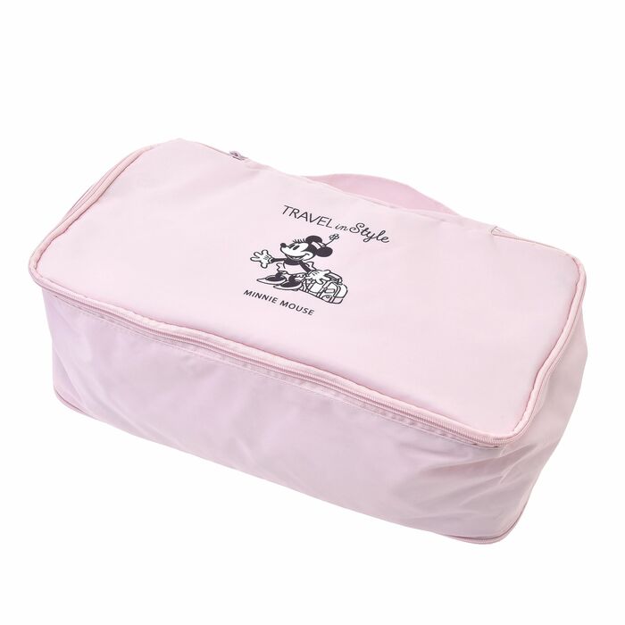 また、ミニーがデザインされたファスナーで簡単に圧縮できるパステルピンクのポーチや…。