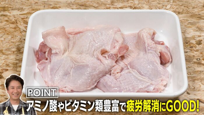 使うのはうまみとコクがある鶏もも肉。アミノ酸やビタミン類が多く疲労解消にも良いと言われているんです。