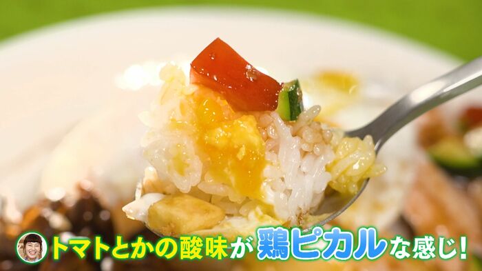 村上:ん!おいしい!鶏肉ほんとにプリプリで皮がモッチモチです。ちゃんとトマトとかの酸味が鶏ピカルな感じ。