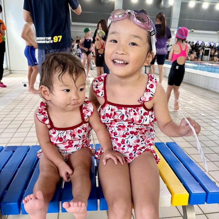 乃々佳ちゃんはヒラヒラのサクランボ柄の水着で泳力検定に挑戦。その一部始終が映像で公開されました。