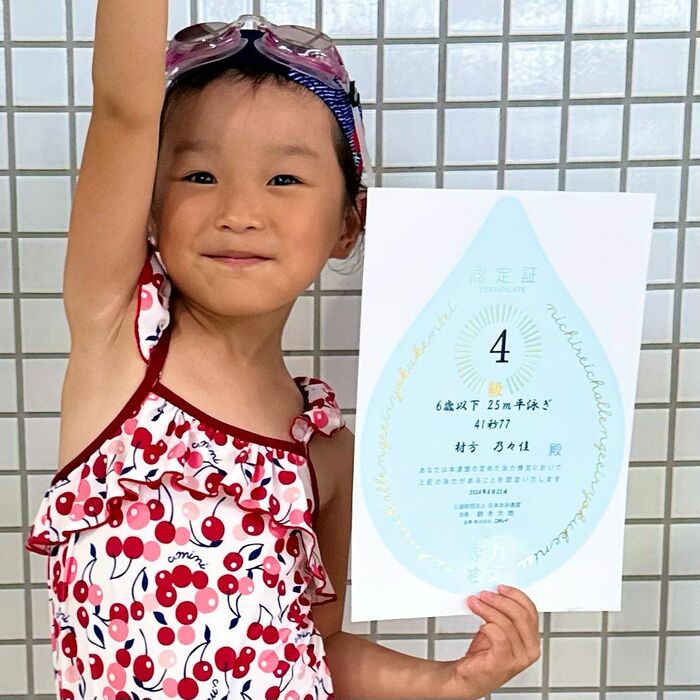 結果は、41秒77のタイムで泳力検定4級に見事合格!
