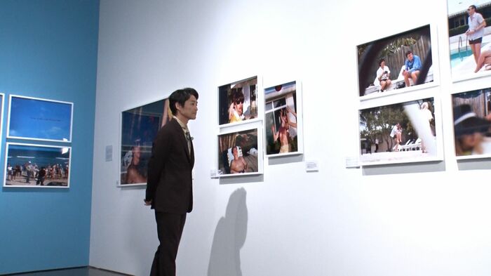 ポールさんが撮影した写真など約250枚の展示をゆっくりと、かみしめるように楽しんだ安田さん。