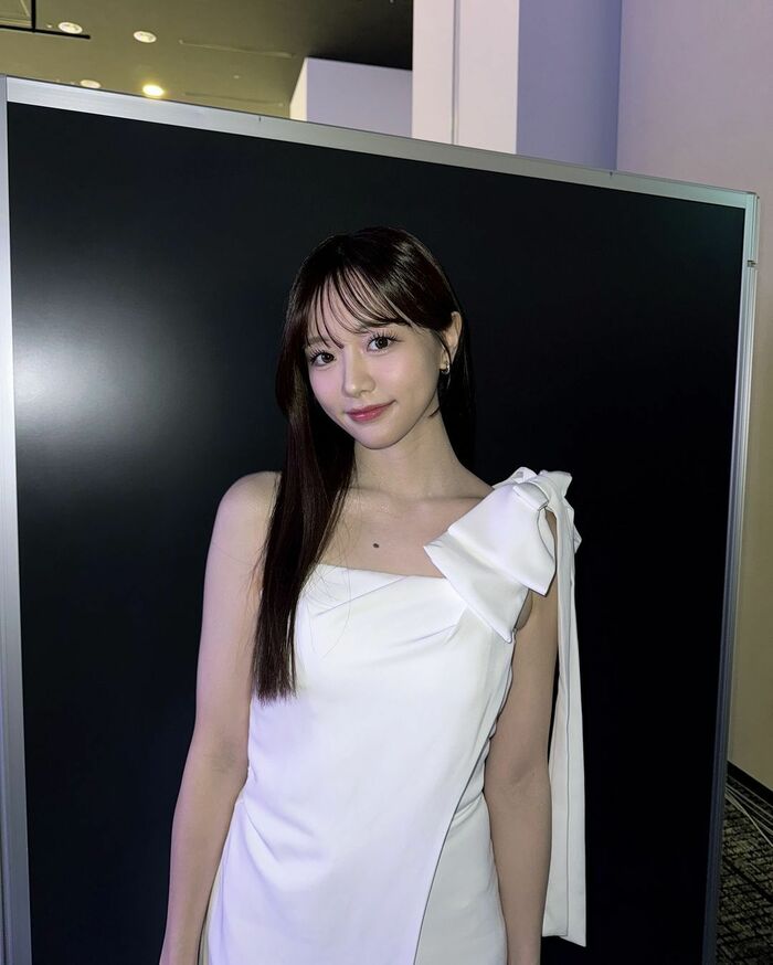 「大人っぽくしてもらった日」というコメントとともに、肩に大きなリボンのついた白いドレス姿でカメラに笑顔を向ける自身の写真を投稿した森さん。