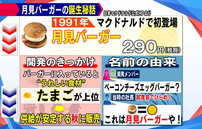 月見バーガーの歴史をひもとくと、日本マクドナルドが1991年に発売した「月見バーガー(290円税別)」が元祖と言われています。