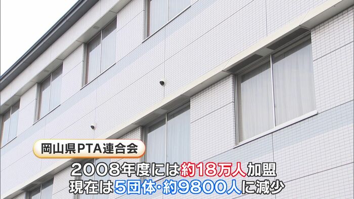 岡山県PTA連合会の加盟者数は、2008年度には約18万人いたものの「年会費に見合うメリットがない」などといった理由から脱退が相次ぎ、現在では5団体・約9800人にまで減少。