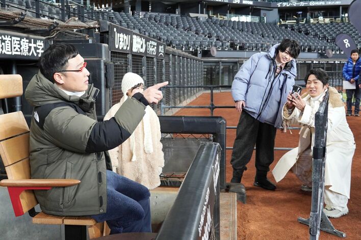 4人が最初に向かうのは、2023年に開業した北海道日本ハムファイターズの本拠地「エスコンフィールドHOKKAIDO」。