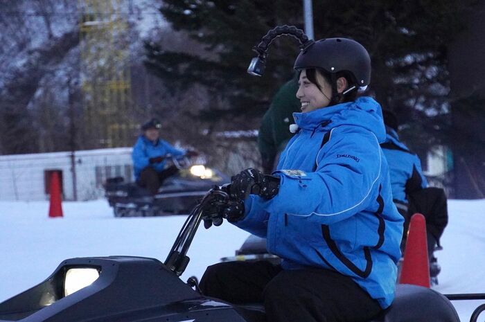 冬の間だけ体験できるアクティビティに、河野さんは「この景色ヤバい!」と大喜び。