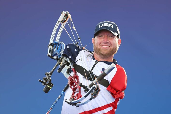 使用する弓によって種目が分かれており、スタッツマン選手はその中でも小さな力でも引けるよう先端に滑車の付いた弓を使う「コンパウンド」に出場しています。
