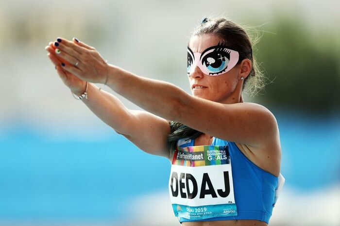 さらに、2019年に行われたIPC世界パラ陸上競技選手権では、少女マンガのような大きな目が描かれたアイマスクを付けていたアルジョラ・デダイ選手。
