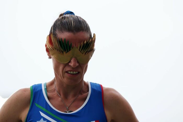 また、2024年5月に神戸市で行われた世界パラ陸上競技選手権では、金色やイタリア国旗の色の羽根があしらわれたアイマスクを付けて出場していました。