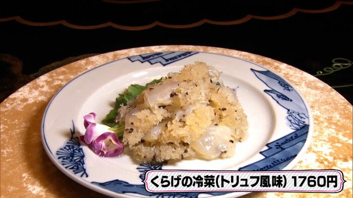 桝谷さんのおすすめは、「くらげ冷菜(トリュフ風味)」(1760円)。