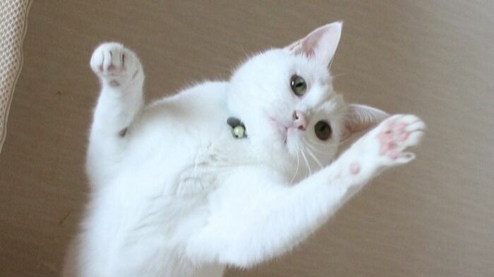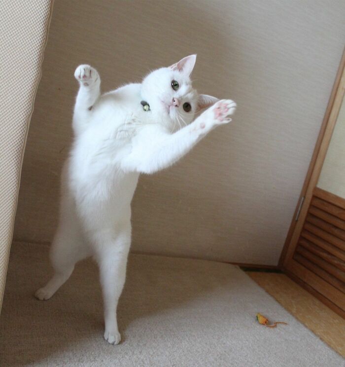 飼い主曰く「綺麗な立ち姿で、手も上がっていたので、面白いなと思った」ので撮影したとのこと。