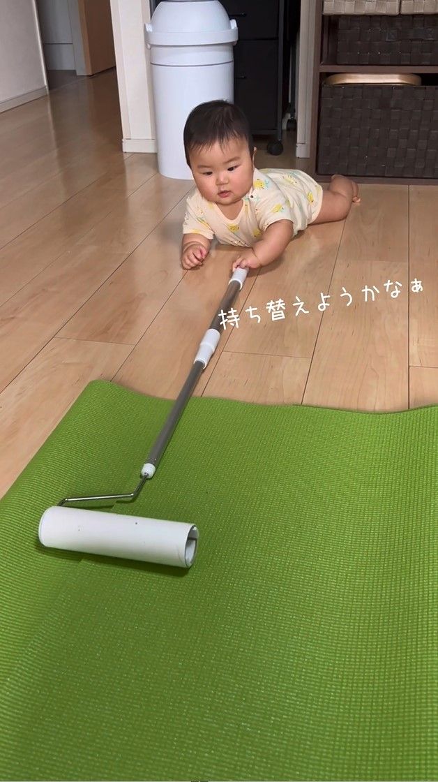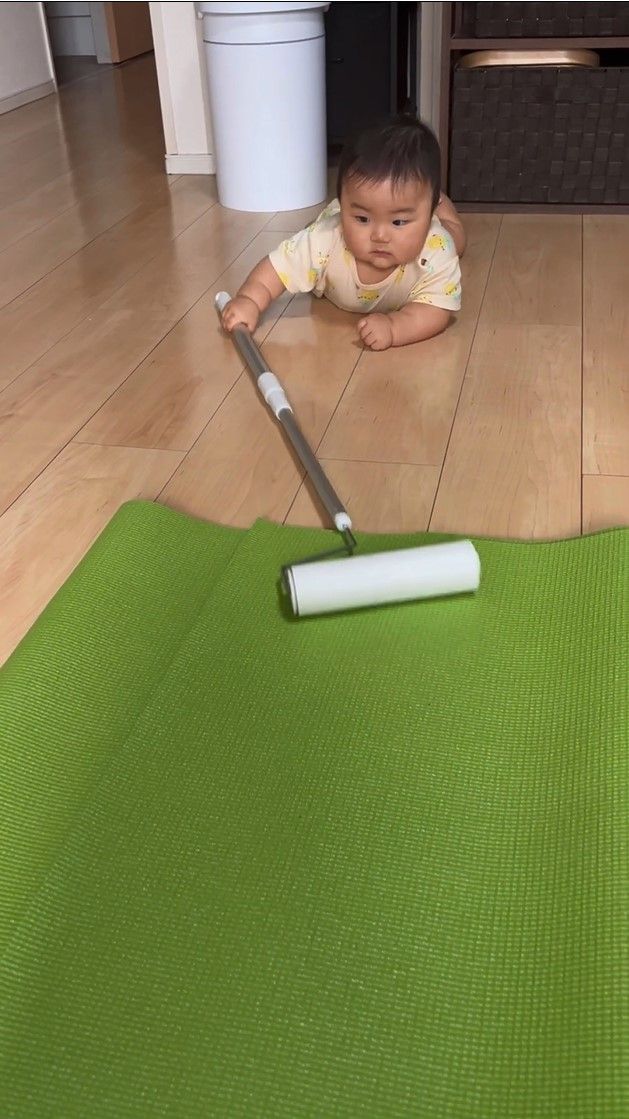 2024年8月16日に投稿された、赤ちゃんが器用に粘着クリーナーを使ったり、テーブルを拭いたりする動画が話題となっています。