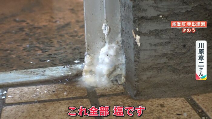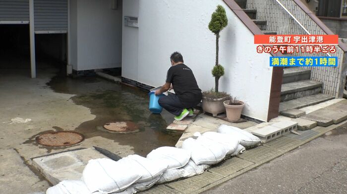 海水による被害に悩まされる宇出津港の住民たち。今後の大雨による被害拡大にも不安を募らせます。