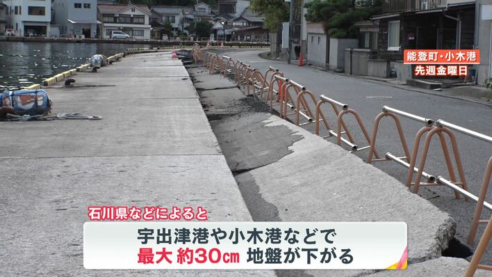 石川県などによると、町内の宇出津港や小木港などで、最大で30cmほど地盤が下がってしまったといいます。